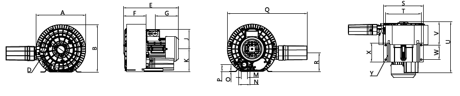 N/A The performance curves are based on air at a temperature of 59 ºF and an atmospheric pressure of 29.91 inch Hg with a tolerance of ±10%. The total pressure differences are valid for inlet and ambient temperatures up to 77 ºF. Suction capacity relates to inlet conditions. Pressure capacity relates to atmospheric conditions. For other conditions please contact Republic. Three phase motor tolerances are ±10% for fixed voltage motors and ±5% for voltage range motors. Single phase machines are designed with a ±5% tolerance. The frequency tolerance is ±2% maximum. |