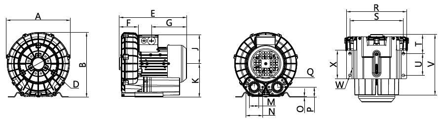 N/A The performance curves are based on air at a temperature of 59 ºF and an atmospheric pressure of 29.91 inch Hg with a tolerance of ±10%. The total pressure differences are valid for inlet and ambient temperatures up to 77 ºF. Suction capacity relates to inlet conditions. Pressure capacity relates to atmospheric conditions. For other conditions please contact Republic. Three phase motor tolerances are ±10% for fixed voltage motors and ±5% for voltage range motors. Single phase machines are designed with a ±5% tolerance. The frequency tolerance is ±2% maximum. |